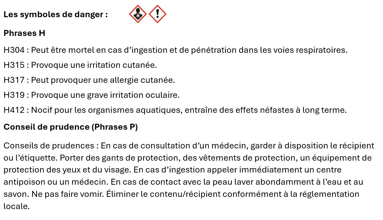 | Précautions | Cette huile essentielle contient plusieurs composants biochimiques allergènes (linalol, géraniol, limonène, coumarine) |